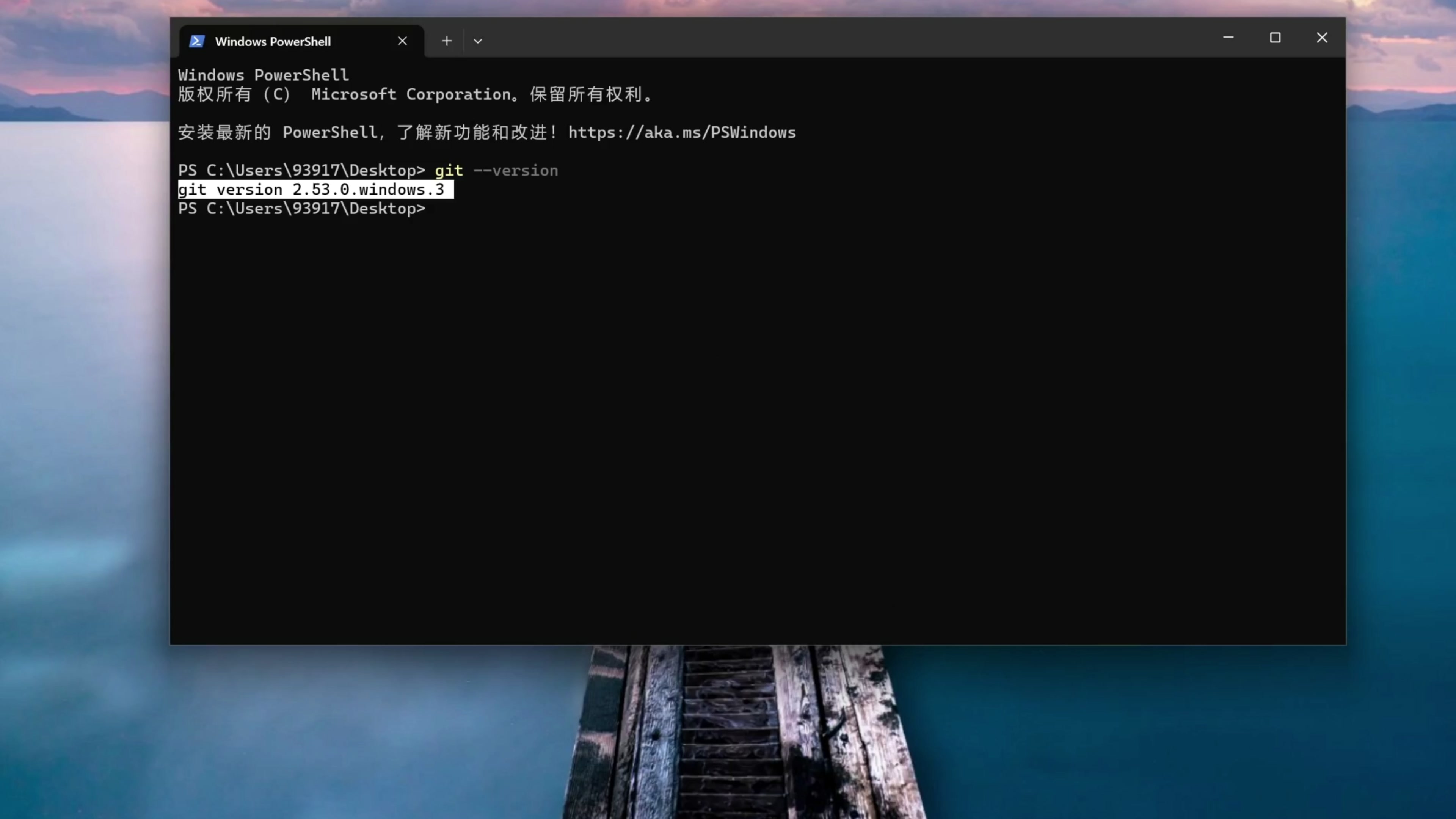 这里能够成功的打印版本号,我们的 Git 就安装成功了。