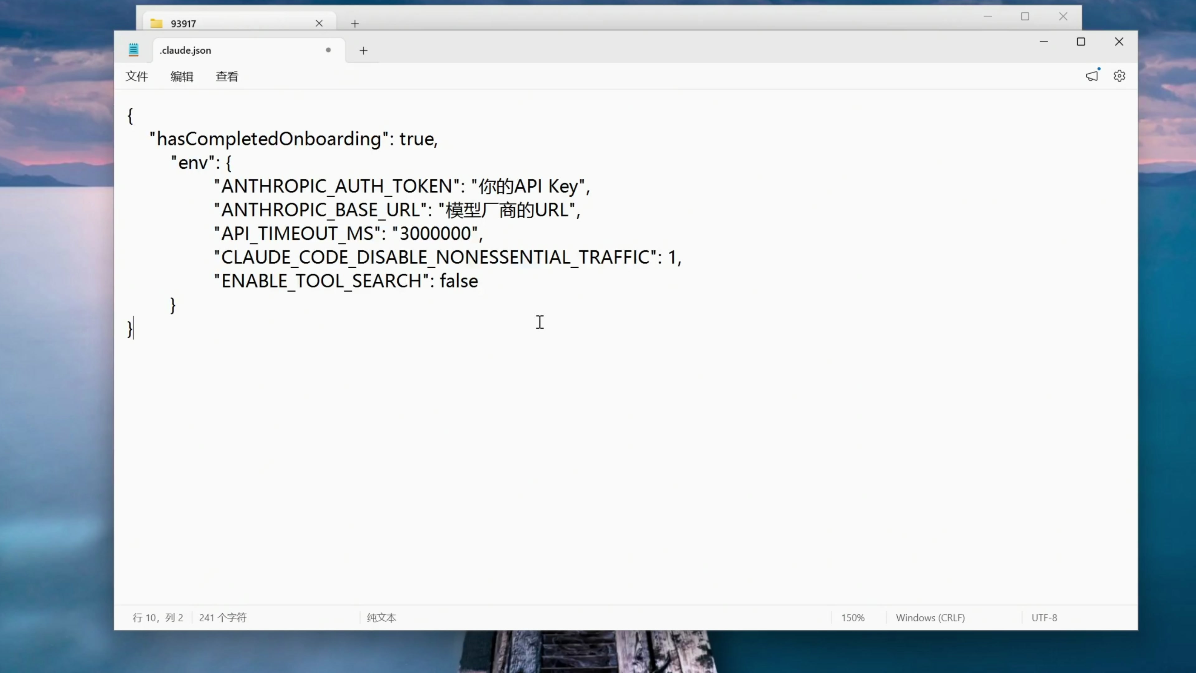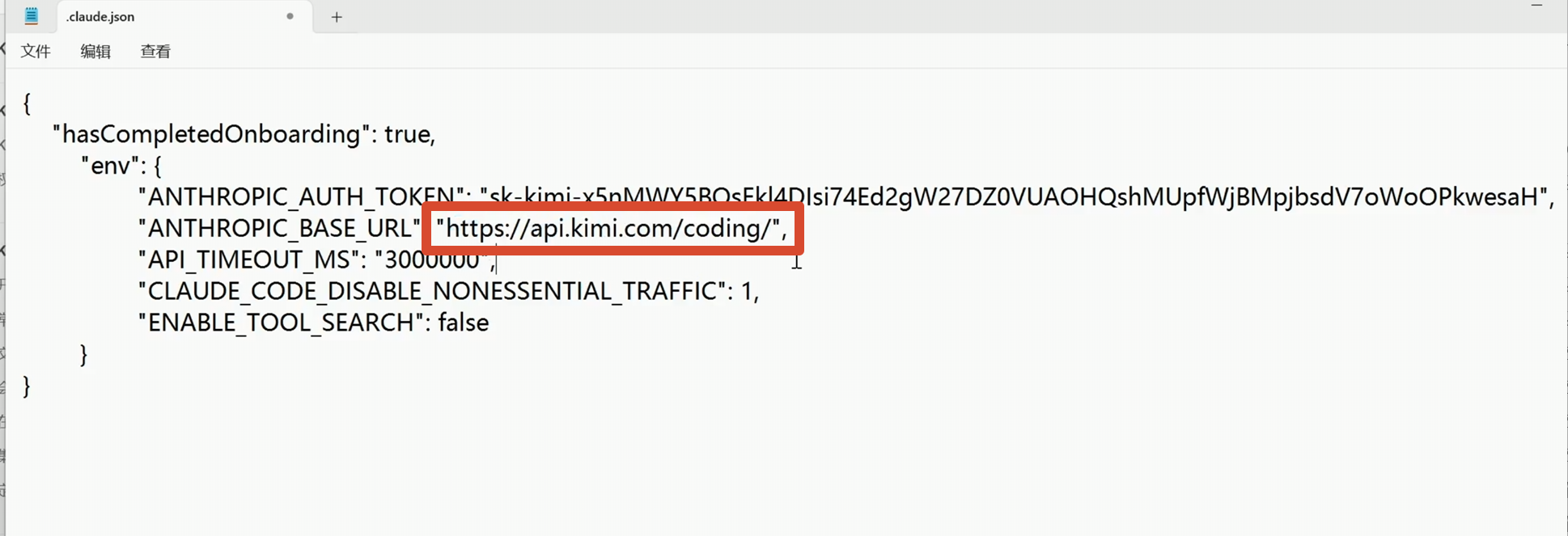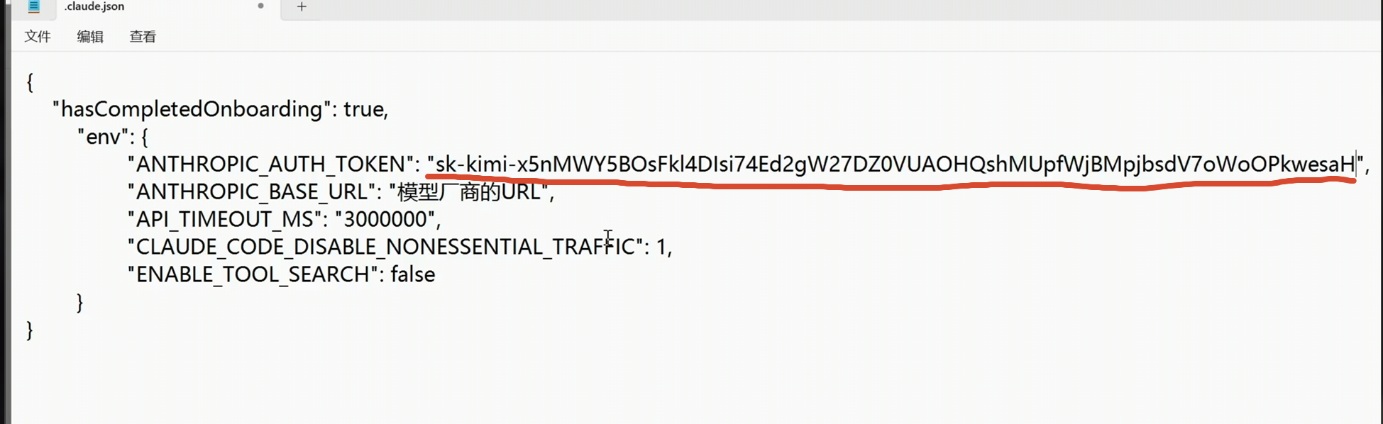 我们把这一串复制下来,填写到 Claude Code 的配置里面。
