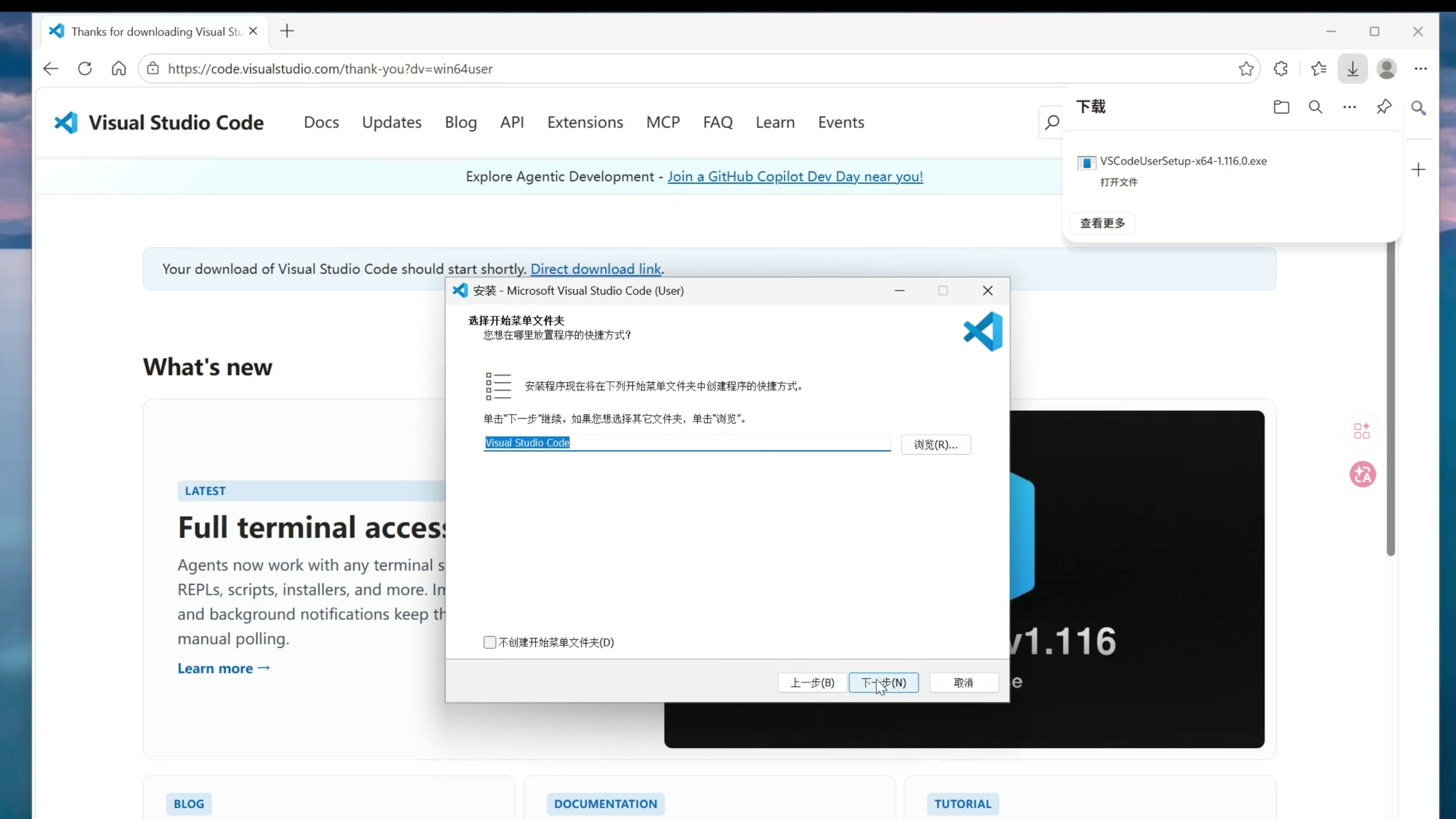 点击下载 Windows 系统的安装程序,然后打开安装程序,一路点击下一步完成安装。