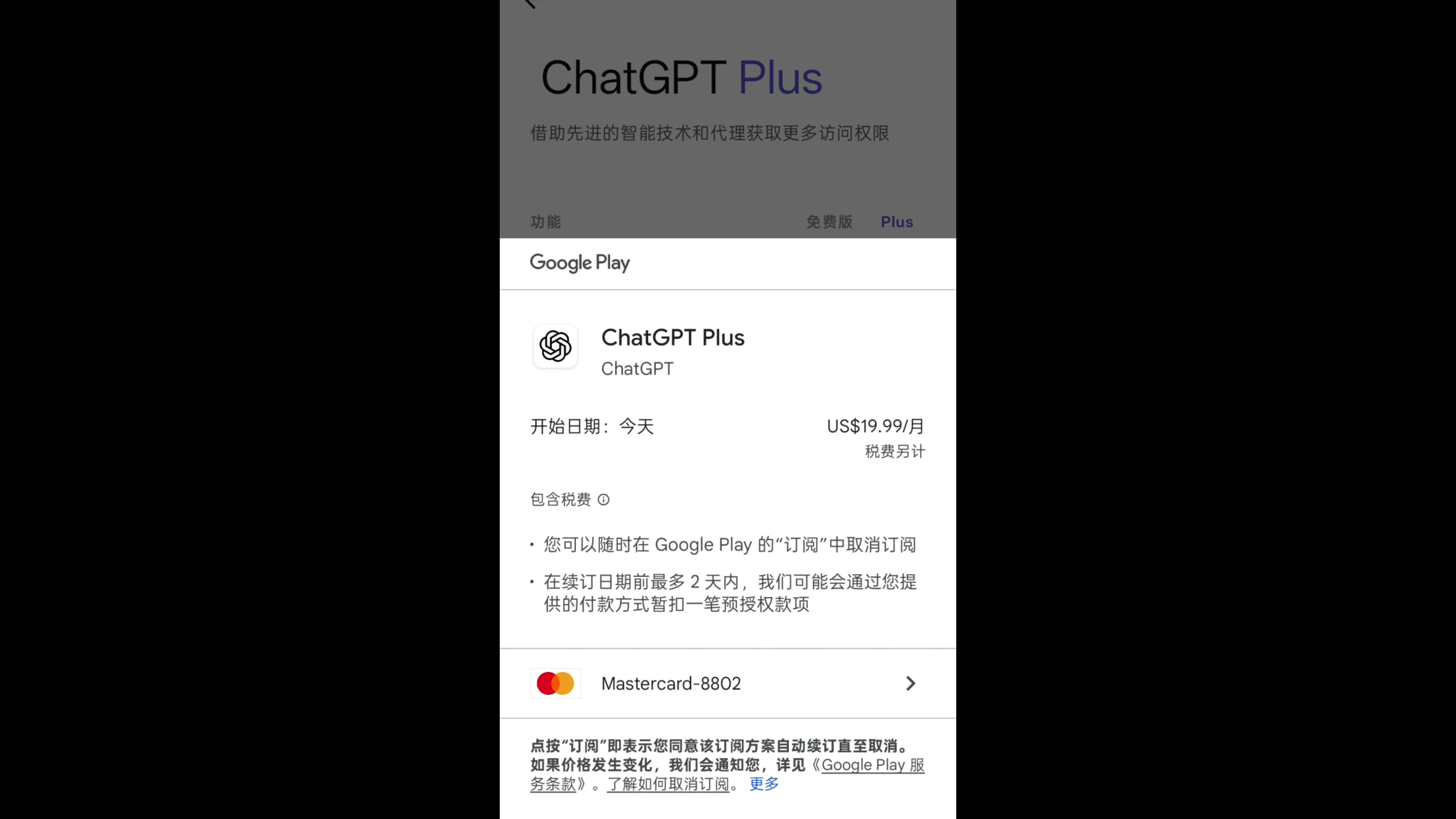 接下来我们回到首页,点击头像,点击付款与订阅,这里点击添加卡片,国内的卡片也可以绑定成功。接下来我们还是回到谷歌 play 的首页搜索 chatgpt ,下载 chatgpt 的手机版 APP 。打开手机版的 chatgpt ,顶部有一个获取 plus 点击一下,订阅方式选择 google play ,这样我们就获得了 GPT 的 plus 订阅。