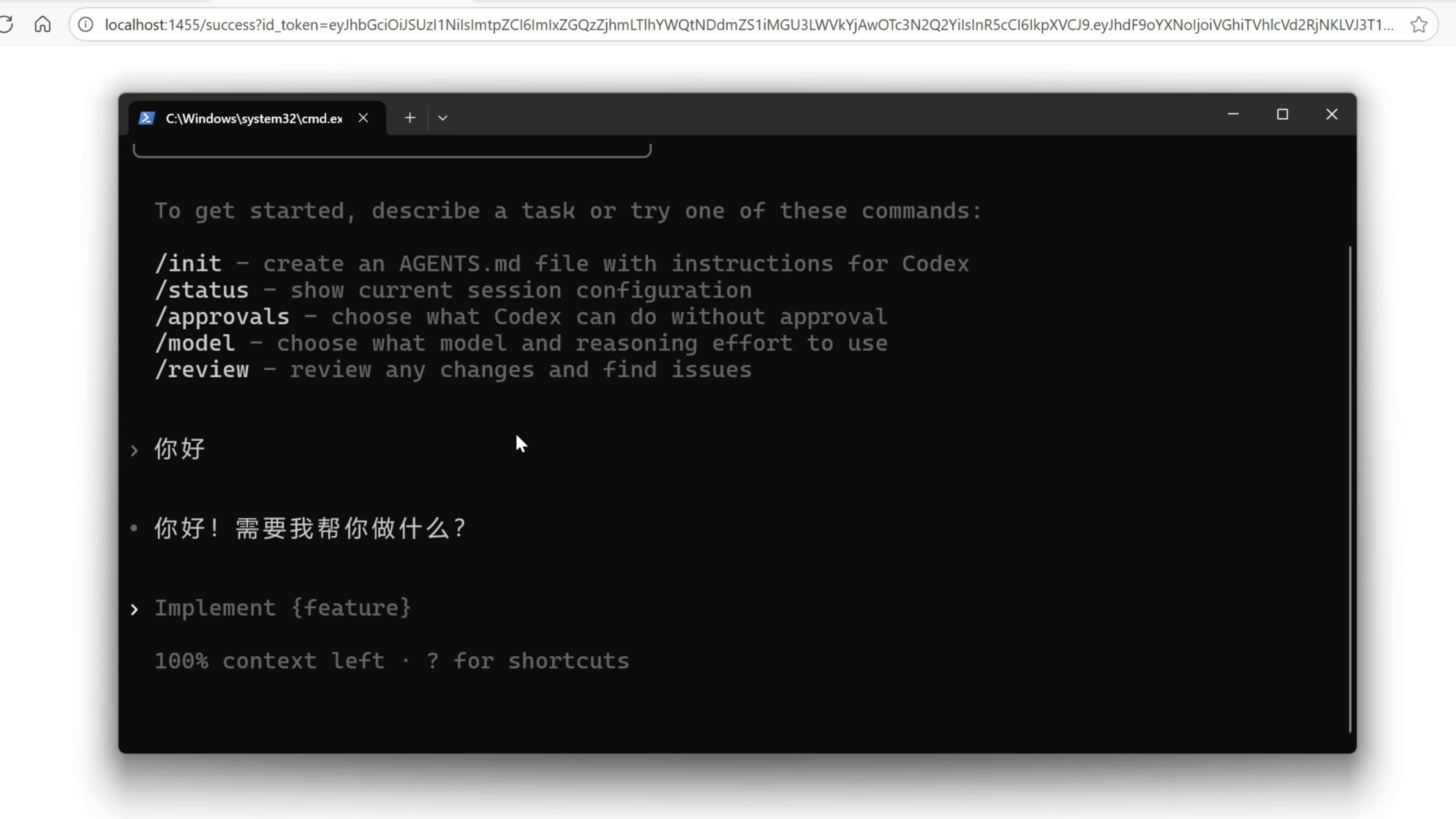 我们来到桌面,右键在终端打开,这里输入 Codex 的安装命令,然后我们输入 Codex 启动起来,在浏览器里会打开一个登录页面。我们登录一下 ChatGPT 的账户,打个招呼给到了回应就安装完成了。