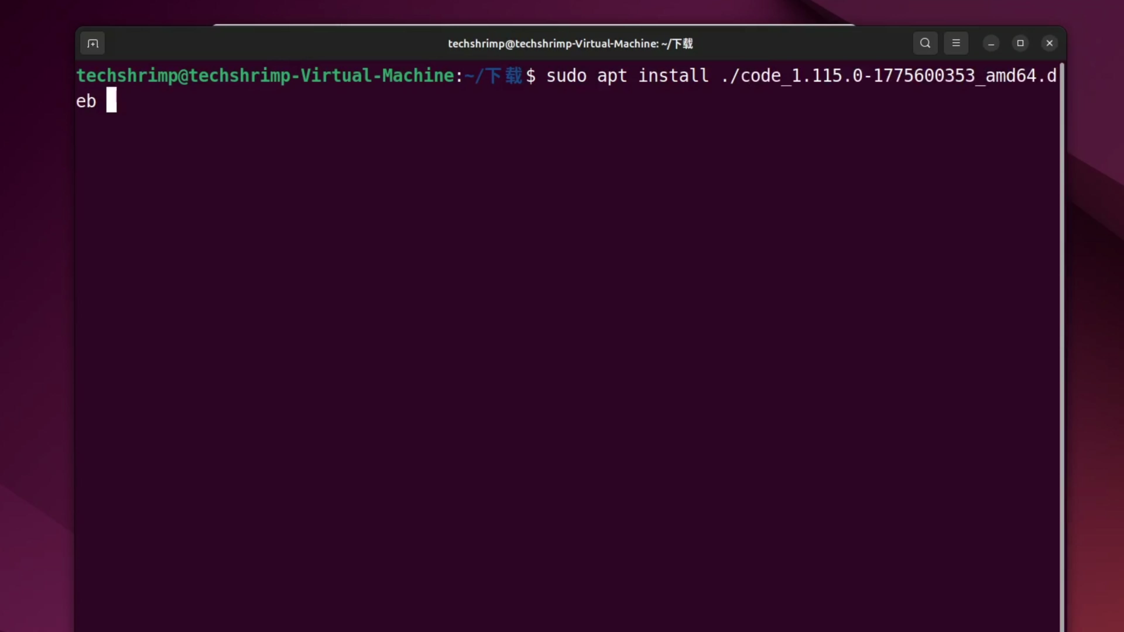 下载下来以后我们来到下载目录,右键在终端运行,然后输入这个命令 sudo apt install ./安装包名字