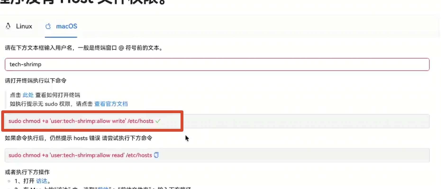 然后我们来解锁 Github 。在国内网络使用 Github 经常会因为网络问题导致超时或者打不开。解决方法是我们来到这个网站下载 Watt Toolkit 这个开源免费的工具,这里我使用的是网盘下载。下载完成以后双击安装包运行,然后把它拖拽进 application 。然后我们打开软件,这里因为安全策略被阻止了,我们可以来到设置–>隐私与安全性,点击 Watt ToolKit 仍要打开,这样就可以成功进入软件。 然后我们找到网络加速,勾选上 Github ,点击一键加速。这里又报了一个权限错误,我们只需要填上自己的 Mac 电脑的用户名,然后复制一下下面这条命令打开终端执行一下,
